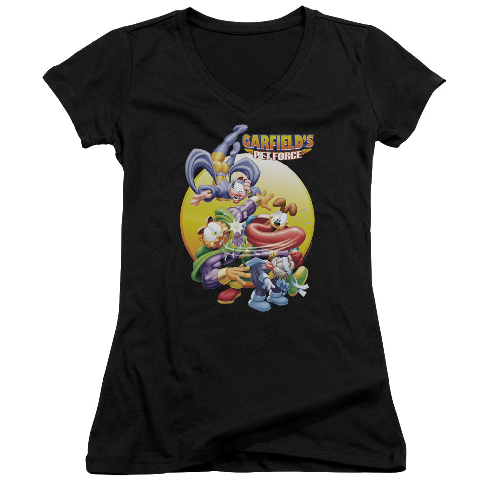 GARFIELD/TONGUE OF DOOM-JUNIOR V-NECK-BLACK-SM