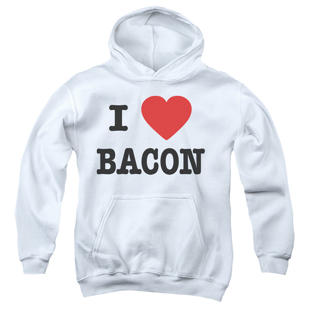 I HEART BACON-YOUTH PULL-OVER HOODIE - WHITE - SM