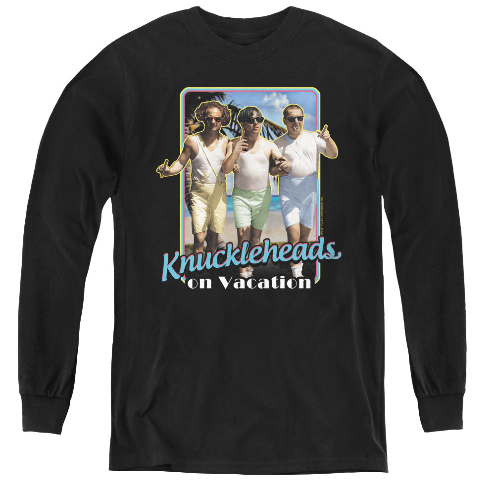 Three Stooges - Knucklesheads On Vacation - Youth Long Sleeve Tee - Black