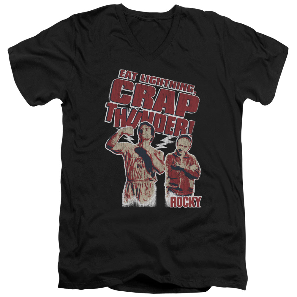 ROCKY/EAT LIGHTNING - S/S ADULT V-NECK - BLACK - SM