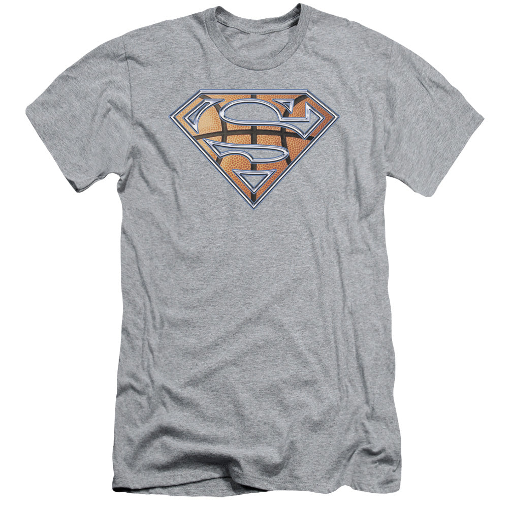 SUPERMAN/BASKETBALL SHIELD-S/S ADULT 30/1-ATHLETIC HEATHER-SM