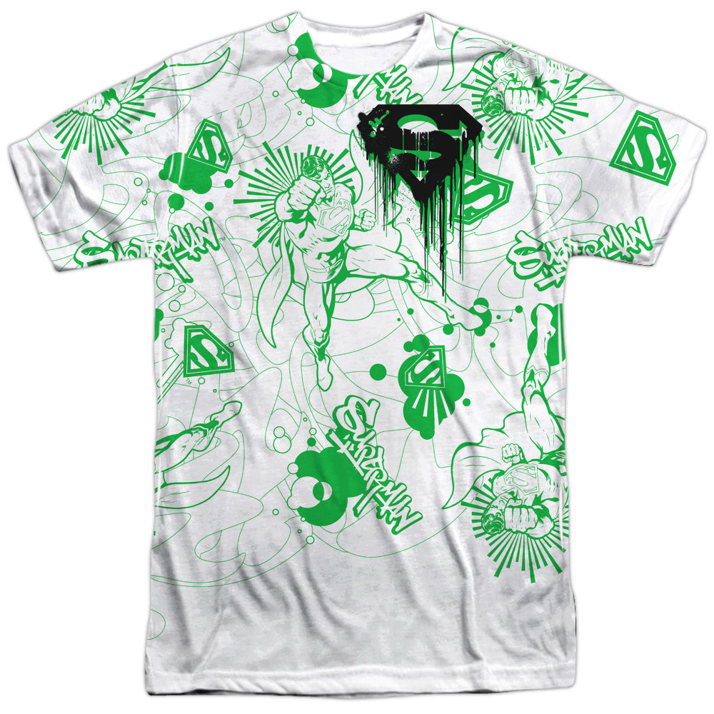 SUPERMAN/IN YOUR FACE - S/S ADULT 100% POLY CREW - WHITE - SM