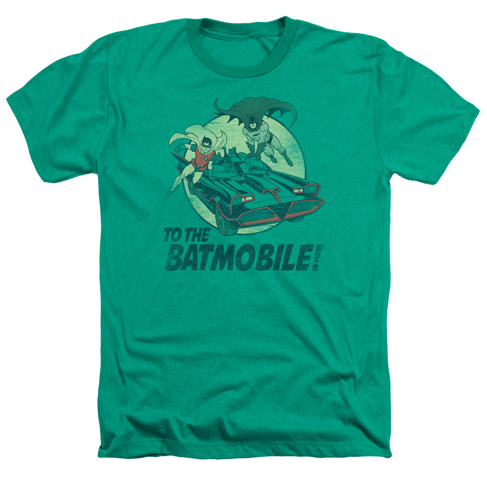 BATMAN CLASSIC TV/TO THE BATMOBILE-ADULT HEATHER-KELLY GREEN-SM