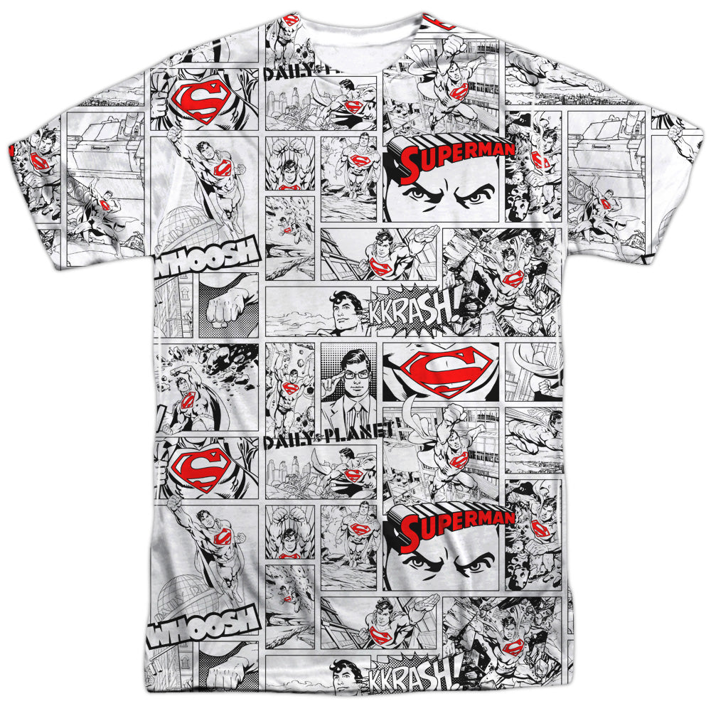 Superman - Comic Page All Over - Short Sleeve Adult 100% Poly Crew - White T-shirt