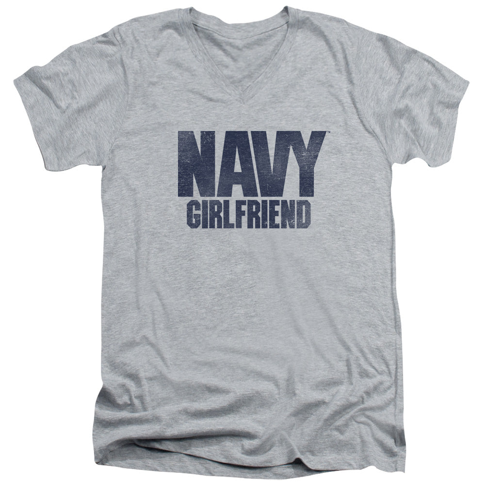 Navy - Girlfriend - Short Sleeve Adult V-neck 30/1 - Athletic Heather T-shirt