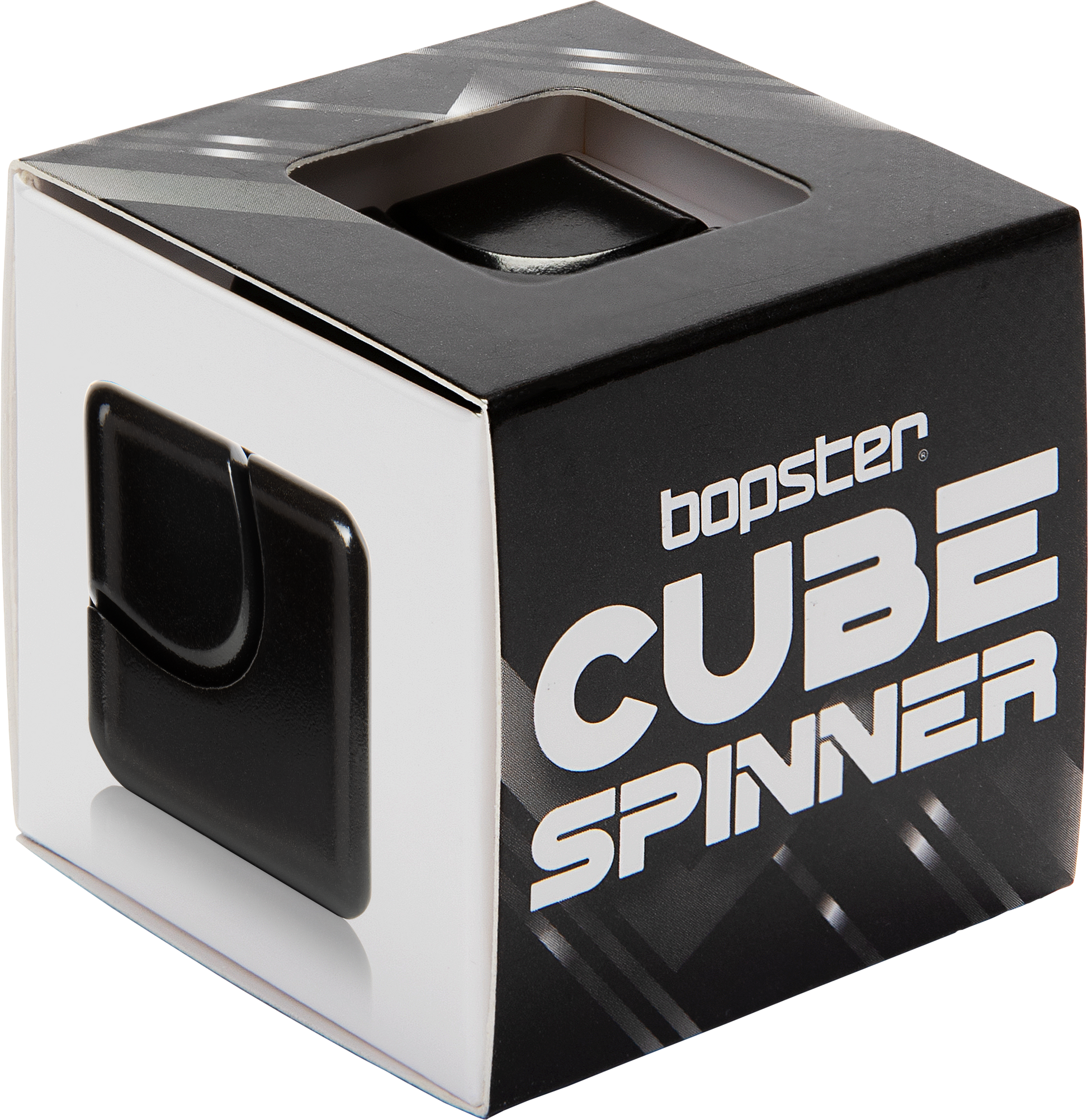 The Bopster Cube Fidget Toy - Black features a sleek, matte black design for a minimalist and modern look. This pocket-sized fidget toy helps relieve stress and enhance focus with smooth, quiet movements. It's perfect for on-the-go stress relief or staying focused in any setting!