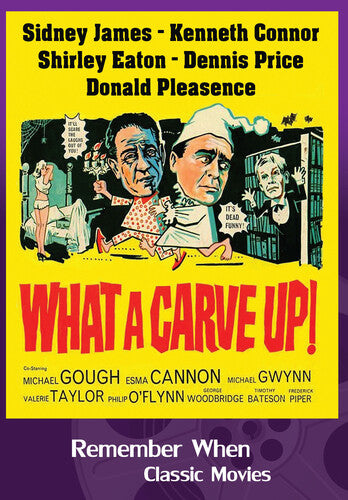 What a Carve Up! Is a 1961 British comedy-horror film starring Sid James, Kenneth Connor and Shirley Eaton. The film was loosely based on the novel The Ghoul by Frank king. The relatives of Gabriel Broughton (Phillip O'Flynn) are summoned to Blackshaw Towers, an old, isolated country house in the middle of the Yorkshire moorlands to hear the reading of his will. Gabriel's nervous nephew Ernest Broughton (Kenneth Connor) brings along his flatmate Syd Butler (Sid James) for support. At the large, gloomy mansion they meet Guy Broughton (Dennis Price), Ernest's cousin, Malcolm Broughton (Michael Gwynn), a piano player who claims everyone is 'quite mad', Emily Broughton (Esma Cannon), a dotty old woman who believes the First World War is still on, Linda Dixon (Shirley Eaton), Gabriel's nurse, and various assorted other relatives. The solicitor Everett Sloane (Donald Pleasence) reveals that they have all inherited nothing except for Linda, who is bequeathed Gabriel's medicines and syringe, much to her amusement. Suddenly the lights go out and the dead body of Dr. Broughton (George Woodbridge) is discovered. Syd believes this was a murder, but when he tries to phone the police he discovers the telephone lines have been cut. With everyone stranded for the night, Sloane recommends everyone lock themselves in their rooms, but Ernest gets lost and enters Linda's room by mistake. Syd and Ernest end up sharing a room and when Ernest goes to the bathroom, someone tries to stab the sleeping Syd, but he resists. Meanwhile, Ernest and Malcolm join in a piano duet when Malcolm gets stabbed in the back. Ernest's screams bring about the others and much suspicion and mayhem result in the deaths of several more guests. Finally, Police Inspector Arkwright (Phillip O'Flynn) arrives, but is sceptical that murders have been committed as there are no bodies - until Guy's body is found. More mayhem ensues as the remaining relatives are all considered to be murder suspects. Although, let it never be said that the chances of a will being read without blood being shed are pretty slim as this comedy-horror classic is a great example of just that! (84 minutes - 1961 - Black & White - 4:3)