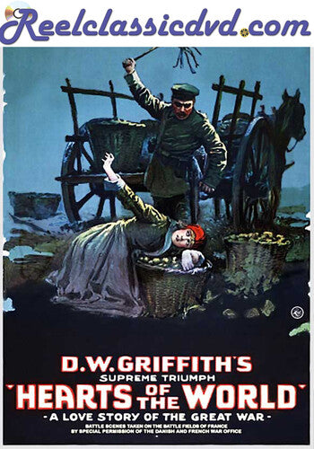 D. W. GRIFFITH'S HEARTS OF THE WORLD (1918) HEARTS OF THE WORLD starring Lillian Gish, Robert Harron, Dorothy Gish, Josephine Crowell, Kate Bruce and Ben Alexander. Directed by D.W. Griffith, photograped by G.W. Bitzer. Griffith's third great feature following BIRTH OF A NATION and INTOLERANCE, HEARTS OF THE WORLD is the story of a boy, a girl and their families as they are thrust into the horror and violence of the Great War. Masterfully directed and photographed, Griffith again works his magic in presenting scenes of war on a grand scale, balanced by gentle scenes of innocence, humor and family life. Wonderfully acted by stars Lillian Gish, Bobby Harron and the Griffith stock company with truly evil portrayals by George Siegmann and a young Erich von Stroheim. Look for Noel Coward in his very first screen appearance! Complete and running a full 122 minutes, this is definitely not the poor quality, jumpy, step-printed version commonly available elsewhere. This is a brand-new digital transfer from a lovely print that derives from Griffith's own materials as released by Essex Films. Presented with a wonderful new score by Ben Model, HEARTS OF THE WORLD is a great and neglected masterpiece!