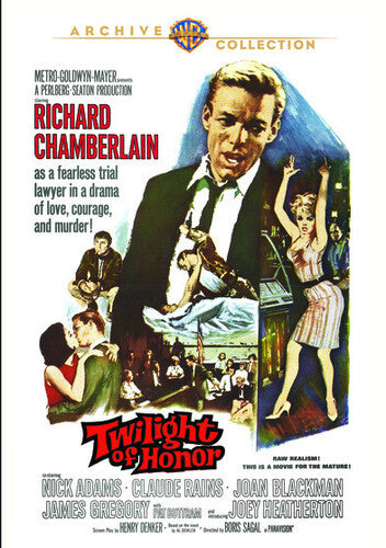 Richard Chamberlain turns in a smooth and persuasive performance (The Motion Picture Guide) in a riveting courtroom drama that was nominated for two 1963 Academy Awards: Best Supporting Actor (Nick Adams) and Best Art Direction (B&W). Appointed to defend a drifter who's confessed to killing a small town's leading citizen, local attorney David Mitchell (Chamberlain) has no doubt that Ben Brown (Adams) is guilty as charged. But when the state attempts to put a lid on the truth by refusing to call his client's young wife (Joey Heatherton), Mitchell fights to expose the evens that would exonerate Brown and justify the murder. Also starring Claude Rains as Mitchell's mentor and friend, Twilight of Honor features two future stars in their big-screen debut: Heatherton (whose performance earned her a 1962 Golden Globe nomination as New Star of the Year) and Dynasty's Linda Evans.