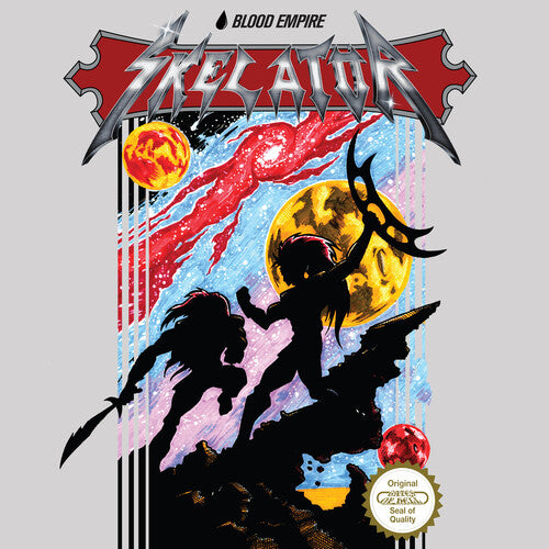 Vinyl LP pressing. Skelator's 2019 Cyber Metal opus found the Seattle metallers pushing their musical and lyrical elements to the outer limits. The eight-song outing was Skelator at their unapologetic best, featuring marauding NWOBHM-inspired guitar lines and a detailed concept from the mind of vocalist Jason Conde-Houston that was a clinic on sci-fi and 1980s movie worship. Their first album on Gates of Hell Records left an immediate impression on denizens across the metal globe who wondered where the band would head next. The answer is the Blood Empire EP, a four-song platter that marries Skelator's penchant for both epic and punctuating speed metal numbers. The album's dense and layered approach would almost belie Skelator's recording tactics, but layer by layer, part by part, Blood Empire came together as a fully-realized work that captures the complexity and depth of Skelator's music. Blood Empire features two bonafide epic cuts in Good Day to Die and The First Empire and two thrashers, Deeds of Honor and Bloodwine. The song sequence gives the EP a cinematic-like quality that serves as a journey into Conde-Houston's story about Star Trek Klingon lore. It is the beginning of The Kahless Trilogy that will chronicle the many deeds that Kahless did to make his empire come true and ties into the Max Nazaryan-created cover art that shows Kahless having his final batter with his brother, Morath, on the peak of a volcano. With their magnum opus Cyber Metal and now Blood Empire ready to greet the metal masses, Skelator will continue to stride boldly into the future.