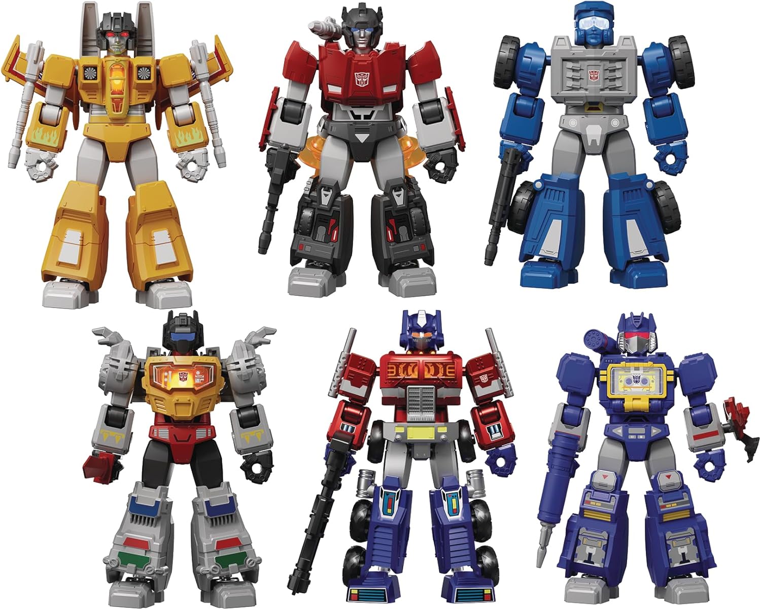 From Pai Technology. Unveil Transformers Shining Version 02: Six unique figures plus a secret character, featuring upgraded glow-in-the-dark elements and 20+ articulation points. Each surprise box may contain rare finds! Perfect for collectors 10+, these limited edition figures bring vibrant detail to any Transformers collection.