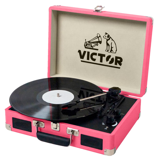 Victor Metro Dual-Bluetooth Belt-Drive Suitcase Turntable - Pink