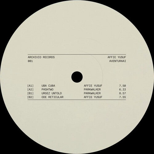 Highly respected Brooklyn-based record store Archivio Records launches it's flagship label, with the help of legendary UK Tech House pioneer Affie Yusuf. This remarkable four track EP made up of previously unheard and unreleased gems, captured from DATs long thought lost during the mid-90s golden era of Swag Records, Wiggle, Surreal and co. Delivers four distinct tracks, perfectly curated to suit the mood of the most discerning dance floors, at any time of the night!'Uba Cuba' sees Affie transport you to pre-Revolution Havana, where the rum flowed and the good times rolled. A playful Latin-infused tech house roller, this track is guaranteed to put a smile on the face of everyone on the dance floor! For the first track under his Parkwalker alias, 'Pashtwo' is a decidedly deeper and darker excursion with a driving bassline, trippy vocals and a constant forward motion, perfect for those moments when you have the crowd really locked in. 'Urgez Untold', the second Parkwalker contribution to the EP is an airy, groovy journey designed for those after hours moments when the sunlight is creeping in and the crowd is ready to let it all go in the pursuit of euphoria. Hypnotic bass, ethereal synths and bouncy, tropical drums give this one a universal appeal and a timeless feel. Finally, 'Ode Reticular' is Affie Yusuf at his brilliant, inventive best, crafting an epic track with three distinct phases. Starting as a dubby minimal chugger before morphing in to a quirky, playful tech house roller, then final chapter sprinkles mystical progressive elements to take you to another dimension, without ever needing to lose your spot on the dance floor.An essential release for lovers of the early UK Tech house sound, seeking out undiscovered gems from the glory days of mid-90s London. With future releases featuring Mark Ambrose, Pure Science, Carl Finlow and more, this is a label to watch closely and collect religiously.Tracklisting:A1. Affie Yusuf - Uba Cuba A2. Parkwalker - Pashtwo B1. Parkwalker - Urgez Untold B2. Affie Yusuf - Ode Reticular