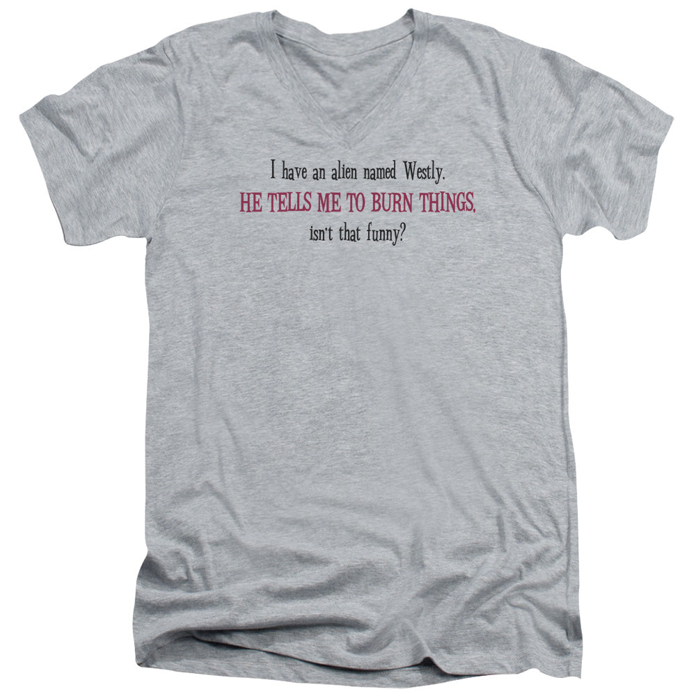 ALIEN NAMED WESTLY - S/S ADULT V-NECK - ATHLETIC HEATHER - SM