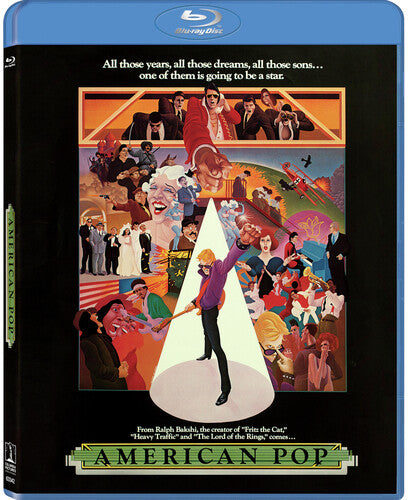 Journey into an explosion of sight, sound, song and superb storytelling as brilliantly conceived byanimation innovator Ralph Bakshi (Fritz the Cat, The Lord of the Rings, Wizards). From a turn-of-the-century immigrant vaudevillian to a rock superstar, AMERICAN POP is the story of four generations whose lives revolve around the beat of American popular music. Featuring a mind-blowing soundtrack bursting with the hit music of The Doors, Janis Joplin, Jimi Hendrix, The Mamas & The Papas, Lynyrd Skynyrd, Pat Benatar, Lou Reed, Bob Seger and more. Packed with energy, excitement, electricity and enthusiasm, Bashki's work is a ground-breaking, kaleidoscopic animated trip.