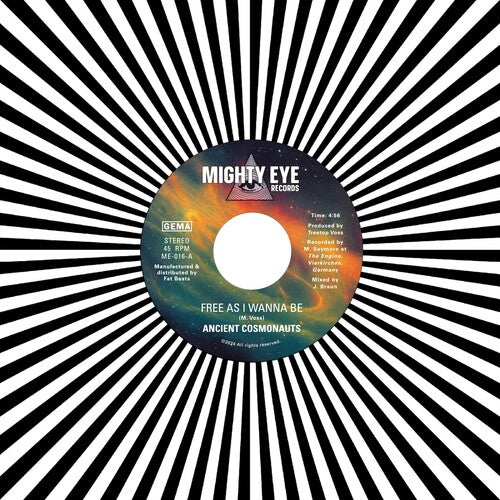 The Ancient Cosmonauts are a collective formed by the Munich trumpet player Michael Treetop Voss (Feed LA, Poets Of Rhythm). The band explores the spaces opening in a harmonically undefined cosmos of singular voices structured by the beat of drums. With lyrics based on the fundamental experience of human life, the Ancient Cosmonauts connect with their listeners using the language of soul, the energy of funk and the freedom of jazz. "Free as I Wanna Be" was initially written and performed as a solo piece for trumpet. It is centered around ideas of self-determination and empowerment, which are prerequisites for both individual and collective freedom. The arrangement begins with an up-tempo conga and hi-hat pulse as the listener is immersed in the emerging elegiac horn melody. Driving collective rhythmic parts and the duet of lead singer Cris Soaz and Treetop add contrast and context to fully reflect the joys of freedom. The flip side "Intergalactical Travel" is a musical meditation on the idea of the Voyager probes (first launched back in 1975) as they continue on their trajectories into infinite space and their frail and fading connections to their terrestrial birthplace.