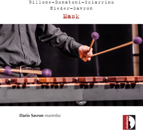 The album Mask collects the fascinating compositions for marimba by five Italian authors (Fabio Nieder, Pierluigi Billone, Salvatore Sciarrino, Franco Donatoni and Dario Savron), entrusted to the brilliant and skillful execution of Dario Savron, who is here present in the dual role of composer and performer. Dario Savron has performed as a soloist across Europe and North America, and alongside chamber ensembles and orchestras including the Royal Concertgebouw of Amsterdam, the Radio Chamber Orchestra of Holland, and the Opera House of Rome. In recent years, he has won several international competitions for his performances and compositions. He has recorded the music of C. Bolling and A. Piazzolla with the Ensemble Evasion for television and radio productions, and has appeared in several music festivals in Canada, the United States, and Italy. He has also premiered several pieces by well known composers. He is currently professor of percussion at the Conservatory N. Piccinni in Bari.