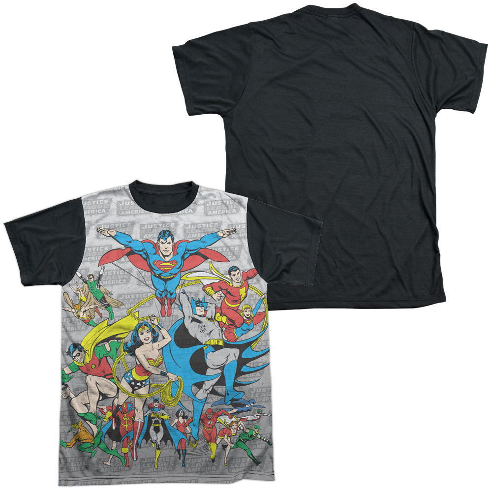 DC/JUSTICE LEAGUE ASSEMBLE-S/S ADULT WHITE FRONT BLACK BACK -WHITE-SM