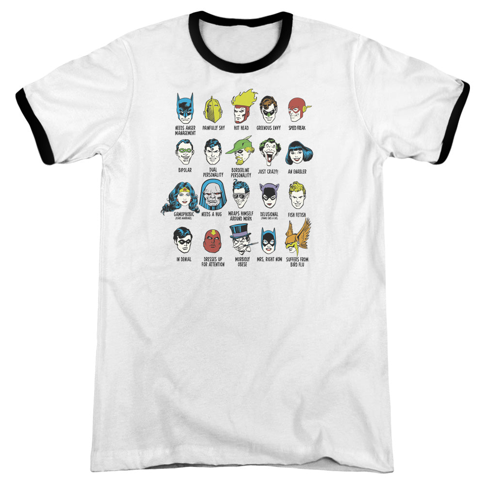 DC/SUPERHERO ISSUES - ADULT RINGER - WHITE/BLACK - SM