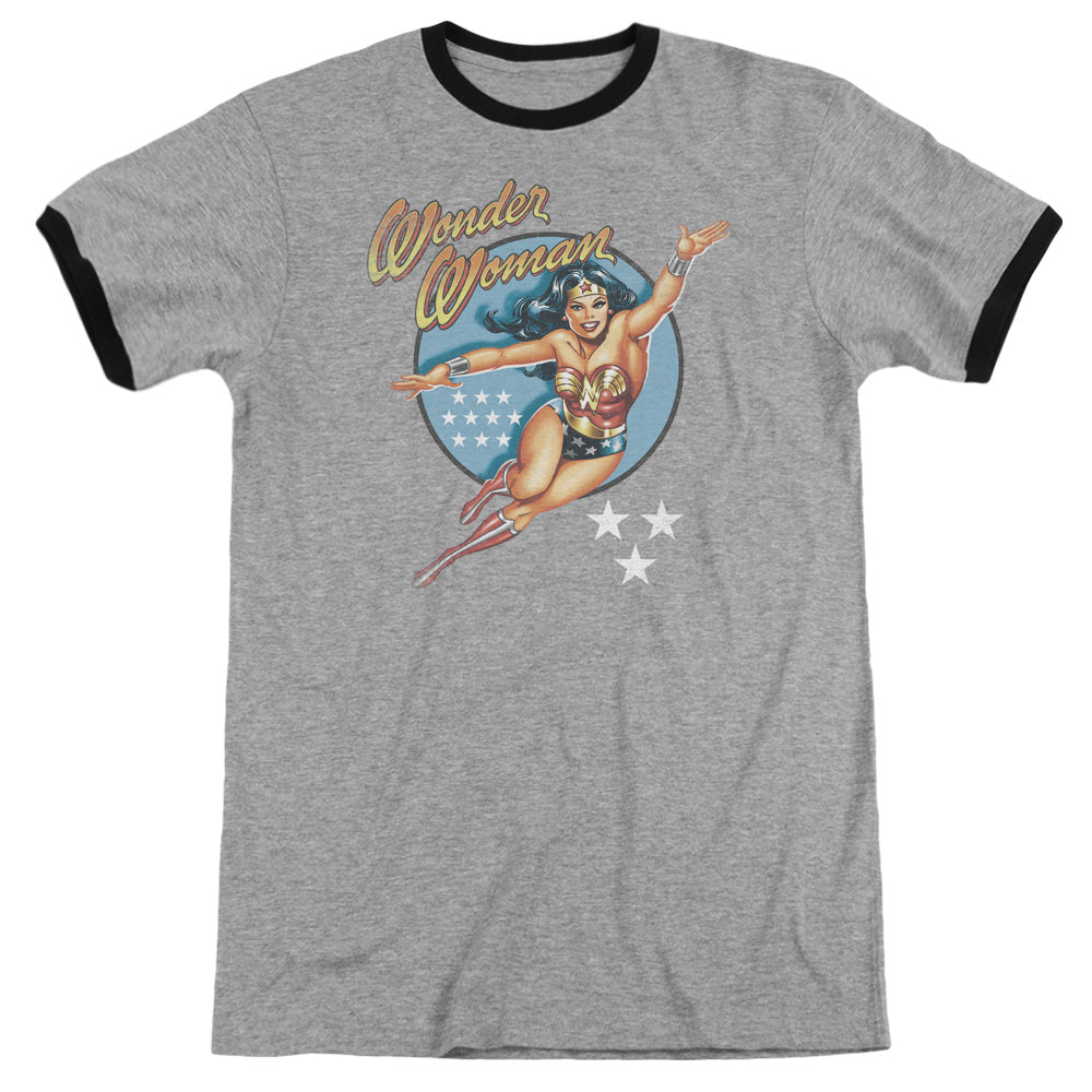 DCO/WONDER WOMAN VINTAGE - ADULT RINGER - HEATHER/BLACK - SM