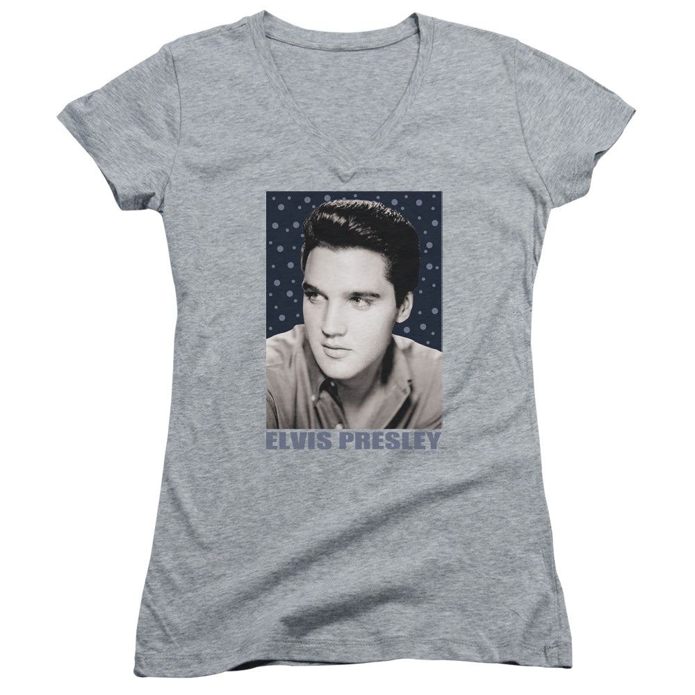ELVIS PRESLEY/BLUE SPARKLE - JUNIOR V-NECK - ATHLETIC HEATHER - SM