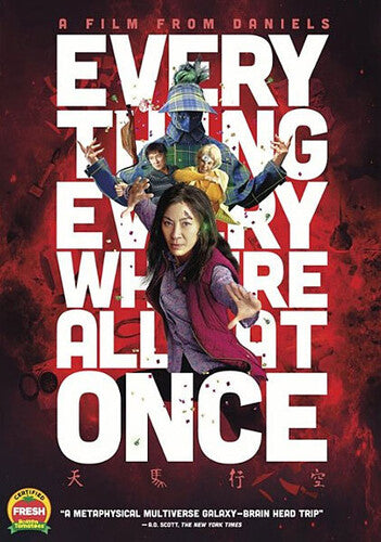 As she braced for an IRS audit, middle-aged emigré Evelyn Wang (Michelle Yeoh) felt a failure as wife, daughter, mother, and businesswoman. It was a heck of a time to discover that she could tap into the abilities of countless variant versions of herself across reality-and that she would need them to conquer a threat poised to collapse it all. Audacious fantasy-action farce from the makers of "Swiss Army Man" co-stars Ke Huy Quan, Stephanie Hsu, James Hong, and Jamie Lee Curtis. 132 min. Widescreen; Soundtrack: English.