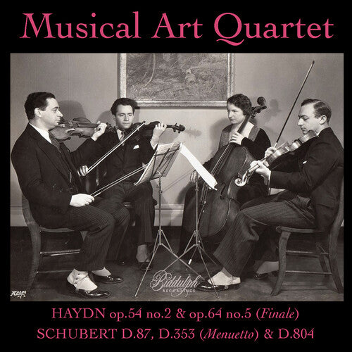 Led by the Russian-born violinist Sasha Jacobsen, the Musical Art Quartet was was one of the preeminent quartets established in the US. In fact, the famed cellist Gregor Piatigorsky proclaimed that the Musical Art Quartet was the greatest quartet he ever heard. First violinist Jacobsen made numerous solo recordings before he established the Musical Art Quartet, but is probably best known as the fourth and final name of the popular Gershwin song "Mischa, Jascha, Toscha and Sascha", the forenames of four renowned Russian-Jewish violinists: Elman, Heifetz, Seidel and Jacobsen. Furthermore, the violist in the Musical Art Quartet was none other than Louis Kaufman, a major violin soloist in his own right. Jacobsen formed the Musical Art Quartet in 1926, and this CD features the ensemble's complete recordings of quartets by Haydn and Schubert made for the Columbia label in the late-1920s. Their recording of Haydn's Cmajor Quartet, op.54 no.2, is the first complete recording of a Haydn quartet ever made. Although the Quartet lasted for over two decades, this CD contains the group's only recordings of the quartet repertoire. Supplementing this historic CD release are comprehensive notes by the chamber music expert Tully Potter.
