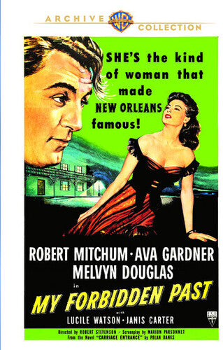 Robert Mitchum and Ava Gardner are star-crossed lovers in this steamy tale of a woman scorned set in 1890s New Orleans. Wrongly believing Barbara Beaurevel (Gardner) had stood him up on the eve of their elopement Dr. Mark Lucas (Mitchum) has returned from South Africa accompanied by Corinne (Janis Carter) a woman he married on the rebound. Determined to win him back Barbara bribes her cousin (Melvin Douglas) to break up the marriage coldblooded scheme that ends in death and the doctor suspected of murder. Based on Polan Banks' 1947 novel Carriage Entrance My Forbidden Past was directed by Robert Stevenson (Jane Eyre) and features the first and only teaming of Mitchum and Gardner. Borrowed from M-G-M Gardner was one of Hollywood's most ravishing stars her earthy sensuality combining with Mitchum's smoldering cool to create a rare on-screen chemistry that still sizzles today.