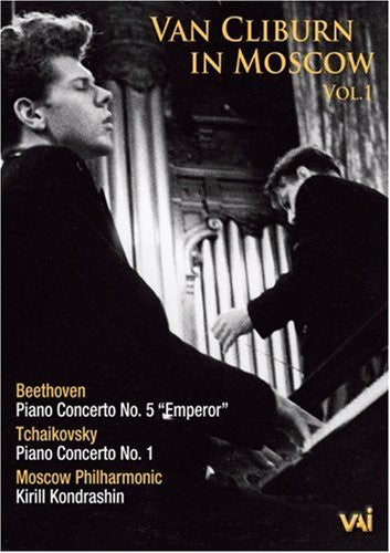The pianist performs works by Beethoven, Tchaikovsky, Chopin, and Liszt live in 1962 at the Big Hall of the Moscow Conservatory with the Moscow Philharmonic conducted by Kyrill Kondrashin. B&W.