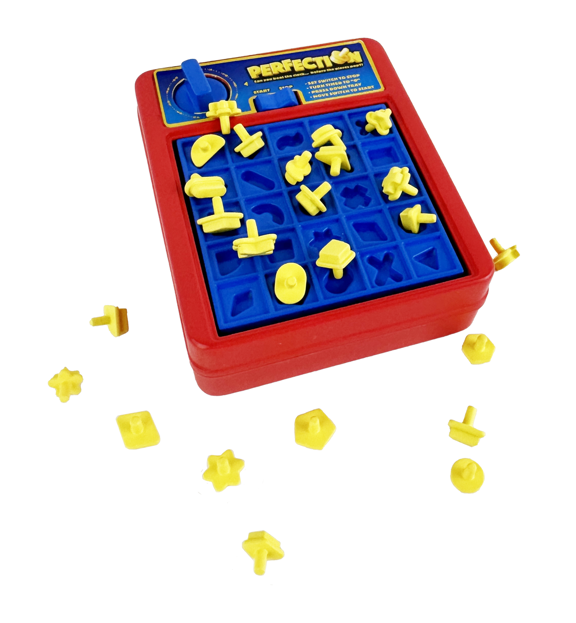 Enjoy all the excitement of the original Perfection game — now in a fully functional, pocket-sized version! Race against the timer to fit all the shapes into their matching slots before the tray pops — perfect for on-the-go play! Test your focus, speed, and nerves with every game — it’s a fast-paced challenge you can take with you anywhere!